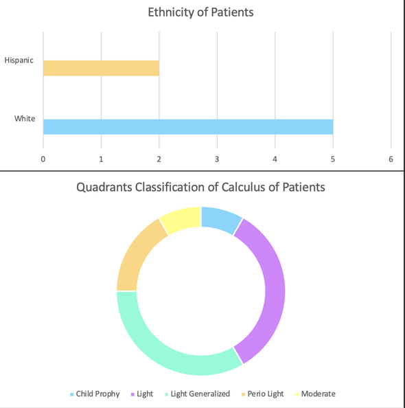 2. 8/26/24: Finished hand scaling two quadrants of Light Generalized Hand. Polished and placed topical fluoride. The appointment went well, and my time was efficient. I completed my calculus map observations. Where I needed to improve, on the calculus map, is by identifying discernible clicks verse grainy rough. This concept is something that we have been learning this semester, and each time I do a calculus map, I can discern the tactile differences between a clickable calculus compared to a rough spot.